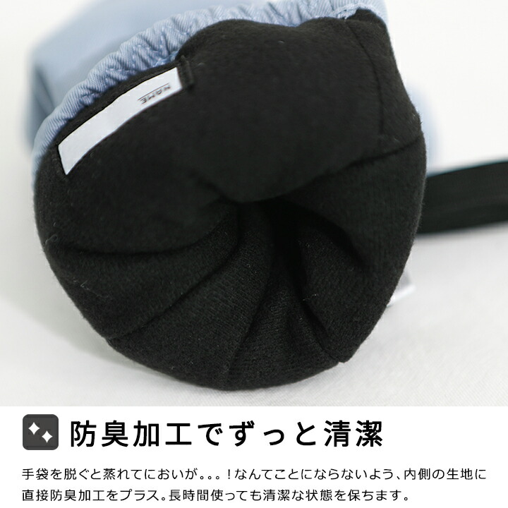 ■防臭機能:一番内側の手が触れる部分の布に防臭加工をプラスしました。長時間はいて脱いでも快適に!