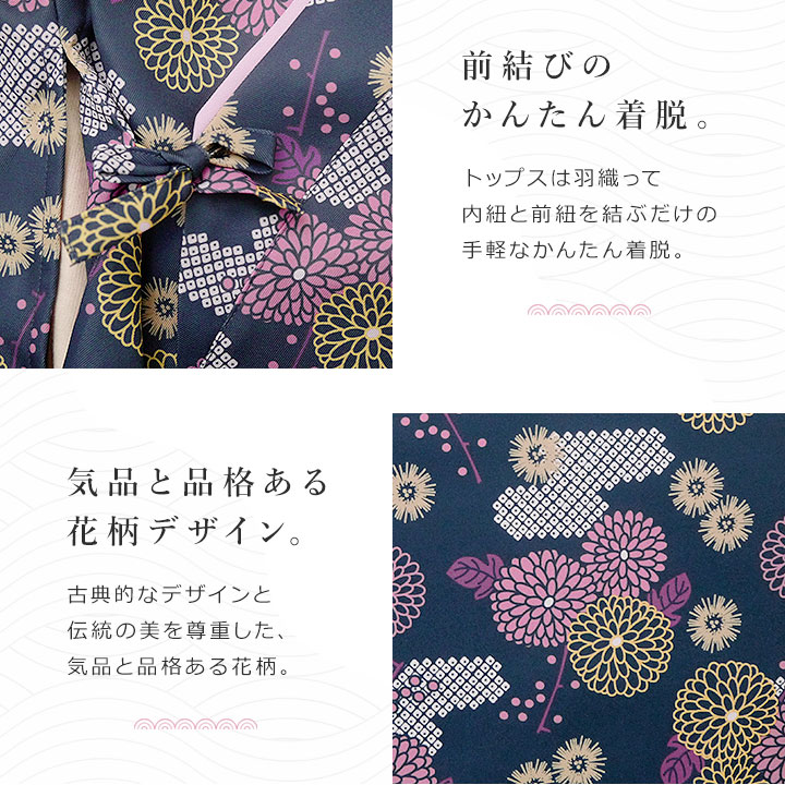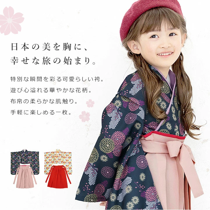 袴もウエストがゴムになっているので、一人でお着替えもかんたんです。