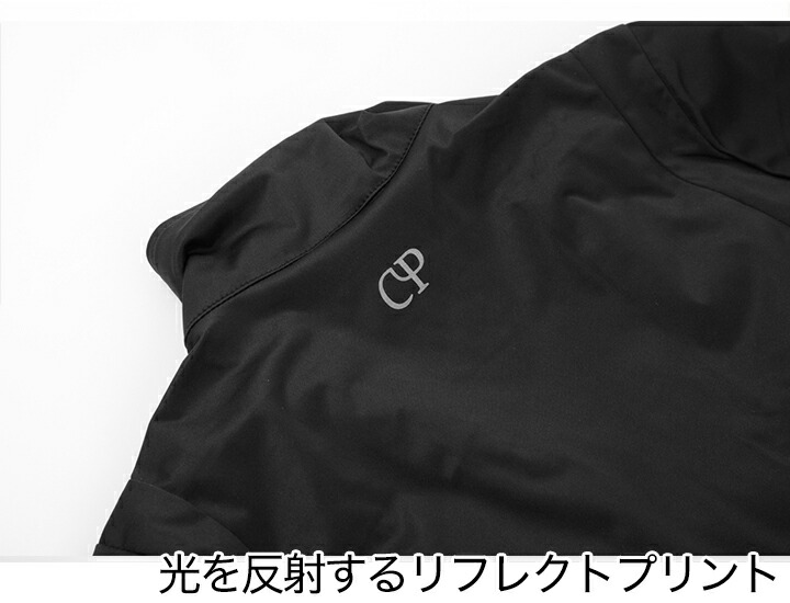 背面ロゴには反射プリントを使用し、夜間の視認性を高めています。